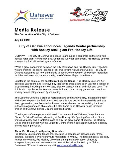City Of Oshawa Announces Legends Centre Partnership With Pro